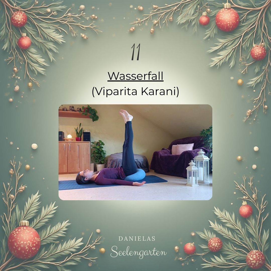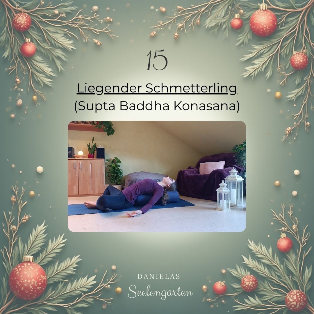 Die Haltung ist eine sanfte Herzöffnung, die sehr regenerierend wirkt und Stress lindern kann. Du kannst sie auch sehr gerne Abends auf deinem Bett machen.❤️